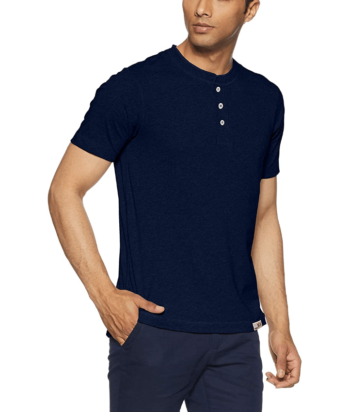 Super combed cotton rich fabric, modern fit, modern three-button henley placket, twill tape reinforcement on neck and side vent for enhanced style and durability, usa originals signature label on chest and brand graphic print at the back, to be worn as loungewear or casual tee.